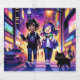 Colorful anime gamer sitting with his cat ready for next level gaming. Liquor Bottle Labels.