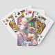 Personalised kid's playing cards. A pretty blue eyed anime girl holding a pretty blue eyed Siamese cat surrounded by flowers.