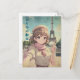 Anime Girl at the Eiffel Tower, Paris - Retro Art Holiday Postcard