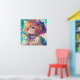 Beautiful Anime girl with two blue eyes holding an adorable kitten. Colours used are pink, teal, orange, blue, purple and blue. Cute and colourful children's Ai art. generatviecontent