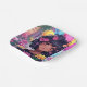 Pretty personalised birthday paper plates. Cute graphics of a beautiful anime girl with darker skin and brown eyes with pretty pink flowers in her cute curly hair. These are cute for a teen or pre-teen girl. Colours are pink, purple, blue and yellow. This girl can represent anyone with darker skin such as Hispanic, Latino, Indian, Middle Eastern, African-American or Bi-racial. Pretty magenta bokeh background.