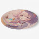 Birthday Party Paper Plates. Pretty purple and pink piece of birthday cake anime girt whimsical art in purple, pink, blue and yellow.