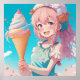 Anime girl holding an ice cream cone whimsical art.