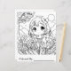 Anime girl surrounded by flowers and trees on a summer day. Cute kid's colouring page.