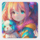 Anime Girl with Puppy Square Sticker