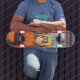 Japanese cartoon skateboard of a young ninja in his hometown village.