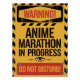 Anime, Marathon, Warning, Do Not Disturb, Gaming, Otaku, Manga, Fan, Humor, Poster, Sign, Hazard, Yellow, Black, Red, Eye, Funny, Geek, Nerd, Video Games