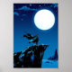 A powerful anime warrior silhouetted against a glowing moonlit sky in cinematic night atmosphere.