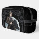 This anime-style graphic vividly brings to life Sirius Black, the enigmatic and daring character from the Harry Potter series. Set against the backdrop of a haunting full moon, Sirius stands with a mysterious aura, his wand in hand, beside his Animagus form, a large black dog. The intricate black and silver design elements swirl around him, enhancing the dark and mystical feel of the scene. This artwork captures the dual nature of Sirius, both as a loyal friend and a fugitive, marked by his noble yet troubled past.