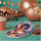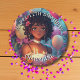 Personalised birthday party paper plates. Cute graphics of a beautiful African-American anime girl and cute curly hair surrounded by pink, purple and blue balloons and flowers. These are cute for a teen or pre-teen girl.