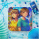 Anime twin girls in the city colourful art Birthday Party paper plates.