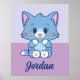 This vibrant graphic captures "Tom", the beloved blue cat from the Japanese version of "Tom and Jerry", in a moment of sheer delight. Tom's fur is a radiant shade of blue, complemented by subtle light blue highlights that emphasize his cheerful expression. His bright green eyes, rimmed with a hint of yellow, sparkle with mischief and curiosity. Sitting upright with his paws forward, the pink pads on his paws add a charming contrast to his blue fur. This illustration of Tom exudes a playful and inviting aura, perfect for fans of the iconic cartoon series and cat lovers alike.