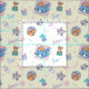 This adorable pattern features the iconic characters Tom, Jerry, and Tuffy from the "Tom and Jerry" series in a fun and colourful design. Set against a cheerful yellow background with light blue and pink accents, the pattern displays various scenes of the characters enjoying playful moments. Tom is seen relaxing, while Jerry and Tuffy engage in their typical mischievous antics, highlighted by elements like musical notes and milk bottles, adding a whimsical touch. The pastel colours and charming illustrations make this pattern ideal for children’s clothing, bedding, or any project aiming to bring a light-hearted and friendly atmosphere.