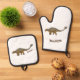 Ankylosaurus armoured dinosaur illustration oven mitt & pot holder set