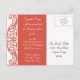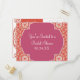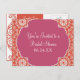 A bright, colourful Bridal Shower Invitation Post card for the bride that leans to the contemporary with a tiny touch of tradition. The white damask pattern has a modern lace feel and the quatrefoil centre design is off-centre and fun! Tangerine, white and watermelon are a very lively colour combination. This invitation can be created in any colour combination you would like. All we need is a colour sample(s) and we're happy to set it up for you, just email us.
