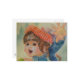A girl wearing a red hat and smiling and waving. From the children's book "Anna's Robin."
