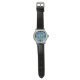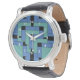 Annexe men's, women's, and kid's eWatch watches with white numbers. Annexe is an abstract design created by Vexenwraith and consists of turquoise and blue blocks on a black background.