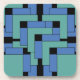 Annexe hard plastic coasters. Annexe is an abstract design created by Vexenwraith and consists of blue and turquoise blocks on a black background.