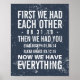 Our unique frameable print is easy to customise with your anniversary and your children's names and birthdates! Modern vintage typography design features the words "First we had each other, then we had you, now we have everything" with spaces for your wedding anniversary and two children's birthdays, on a navy blue background. Have three or four kids? Check our shop for an alternate version.