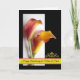 Anniversary for Mum and Dad, Pair of Calla Lilies. Wedding anniversary greeting card for mum and dad. Card features a pair of mango coloured Calla lilies on a black and white background. A yellow golden flourish added at the bottom. Art, image, and verse copyright © Shoaff Ballanger Studios.