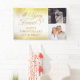 Celebrate any wedding anniversary with this personalised gold and white photo banner sign featuring an elegant gold calligraphy script typography design # YEARS INTO FOREVER for their years married and accented with gold interlocking linked hearts and confetti. The title is editable to use for any year anniversary. Contact the designer via Zazzle Chat or makeitaboutyoustore@gmail.com if you'd like this design modified, on another product or would like coordinating items.