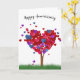 Red, pink, purple, and blue heart tree graphic with green grass on a white background for anniversary.
