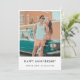 Simple, stylish custom photo Happy Anniversary card with modern minimalist typography and a simple white border. The photo and text can easily be personalized for a design as unique as your loved one! The image shown is for illustration purposes only to be replaced with your own photo. The placeholder image is of a trendy boyfriend and girlfriend, a young man in a blue vest and coral shorts and a young woman with long hair sitting behind him on a retro classic car is teal. The backdrop is of a coral villa. Need help? Message me using the button below and I will he happy to help!