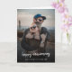 Simple, stylish custom photo Happy Anniversary card with modern minimalist handwritten script typography and a simple black gradient. The photo and text can easily be personalized for a design as unique as your special husband, wife, partner or for a happy couple! The image shown is for illustration purposes only to be replaced with your own photo. The placeholder image is of a stylish young couple wearing sunglasses and hugging each other smiling. Need help? Message me using the button below and I will he happy to help!