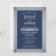 Can you keep a secret? Invite family and friends to an elegant and exciting surprise anniversary celebration with custom navy blue and faux silver foil party invitations. All wording on this template is easy to personalize, including message that reads "Shhh! It's a SURPRISE." The design features a modern striped border, classic vintage art deco typography and stylish script calligraphy. Please note that silver is printed gray ombre color, not metallic foil. Congratulations and Happy Anniversary!