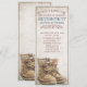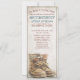 Announcement of retirement with old worn and weathered lace-up boots in vintage style. Gender-related text, the year, the honorary text, the date, the time, the place of celebration and RSVP can be customised.