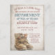 Announcement of retirement with old worn and weathered lace-up boots in vintage style. Gender-related text, the year, the honorary text, the date, the time, the place of celebration and RSVP can be customised.