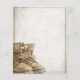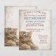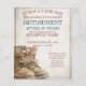 Announcement of retirement with old worn and weathered lace-up boots in vintage style. Gender-related text, the year, the honorary text, the date, the time, the place of celebration and RSVP can be customised.