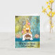 Announcing a new job as a baker in a bakery. The design is a baking gnome with cake, cupcakes, hearts, and cookies, on an abstract background in teal and yellow. The words on the inside can be changed. Thanks to Creative Fabrica for some of the elements in the design.