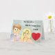 Announcing your divorce with an illustrated couple on a light green background with a red heart cracked. The words on the inside can be changed.