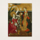 This is a beautiful traditional Catholic image from 1420 of the Annunciation of the Angel Gabriel to Mary with the Memorare Prayer on the back.