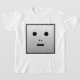 A simple square headed grey shaded robot with a blank look. has a kind of innocent expression like he hasn't crunched too many numbers. The design is included on both the front and back, but can be customised to your preference.