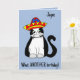 Say Happy Birthday with this cheeky card that is decorated with a cute drawing of a cat in a Mexican hat. You can personalise it with the birthday person's name on the front and inside. The front of the card reads - What, another birthday! - in handwritten script and inside are the words - Hat's off to that! It's a great card for anyone who loves cats.