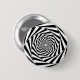Standard button with a black and white psychedelic-inspired pattern.
