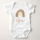 This baby one piece jumper features a bohemian burnt orange rainbow with a heart in the centre and the word 'one' written in a cute handwritten script font. This jumper is the perfect addition to your 'here comes the sun' boho 1st birthday party event.
