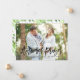 Share the joy with family and friends with this hand-lettered photo pregnancy announcement. This flat card features "answered prayer" script with watercolor foliage background.