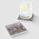 The coasters are gorgeous, a quality feel and heavy weight. They look like a precious archeological find. A rustic stone juxtaposed with a modern floral black and white print. I like the way the print goes slightly imperfect on the cut stone edges giving them a kind-of natural beauty.