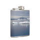 The flask itself is fine. It’s a cheap flask, obviously bought in bulk, however am prepared to overlook that. Given that it is a personalized item, I would have liked to have seen gift boxing instead of the generic packaging. Terrible printing, and/or quality. It’s a cheap, tacky vinyl. It is not cut straight and is also applied in a way that it is overhanging the bottom, causing the glue to catch on items and it will eventually roll and tear, damaging the wrap.