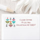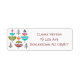 These return address labels have a mid-century modern design of half-circles with white lines and a line through them making them look like antenna.