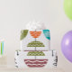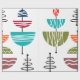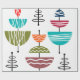 This wrapping paper has a mid-century modern design of half-circles with white lines and a line through them making them look like antenna.