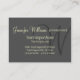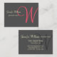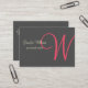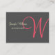 Your fully customisable professional business card featuring your name and your bright red elegant initial on an anthrazite coloured background. On the back your decorative initial is repeated as a black background to your contact data.
