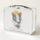 This is a standard metal lunchbox that appears to work just fine. We designed this box ourselves with an uploaded photo and custom text on the front and back. It looks absolutely beautiful except the front of the lunchbox is not centered like it shows in the photo. The print borders don't align with the inset flat part of the box where the preview photo online showed it perfectly centered in there. The back looks nice and centered though.