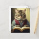 anthropomorphic cat reading a book postcard