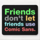 A funny but true shirt for graphic designers and people with good taste in typography - Friends Don't Let Friends Use Comic Sans - the worst font ever! This print features a tasteful and colourful Helvetica Neue Heavy and is available for men, women and kids.