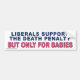 "Liberals Support The Death Penalty, But Only For Babies" bumper sticker