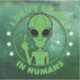 This bold and irreverent design features a classic green alien giving the middle finger, surrounded by stars and a tiny UFO in the background. The alien is framed in a circular border with the cheeky phrase “I DON’T BELIEVE IN HUMANS” boldly displayed above and below. The artwork has a grungy green cosmic background, combining sci-fi vibes with rebellious humor.
